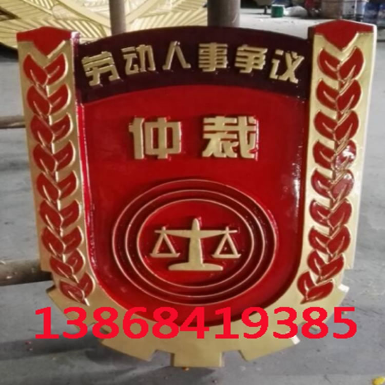 安裝方式 河北勞動人事仲裁徽-小徽章背面都配有穿掛耳孔,釘子釘在墻上,再用穿鐵絲鋼絲,適合安裝在辦公室/會議室會場等。大徽后面為膨脹螺絲孔,安裝需要定做鐵架,鐵架固定墻面上后,再將徽章固定在鐵架上。玻璃幕墻也是需要鐵架方式安裝。